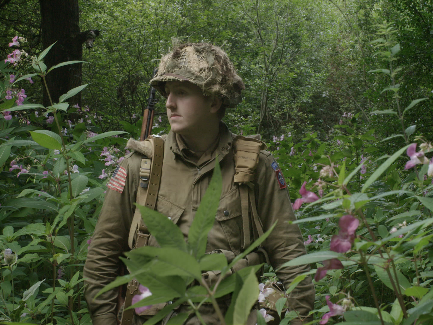 美しい森の中、迷彩服姿でうろつく少年たち。時折銃声が聞こえる。少年たちは、カメラに向かって戦場での経験を興奮気味に語る。ベトナム? イラク? ヨーロッパ戦線? 彼らが語る内容は判然とせずチグハグだ。姿や身振りもどこかおかしい。事実と想像の混同が、不思議な魅力を生む、ひねりの利いたドキュメンタリー。