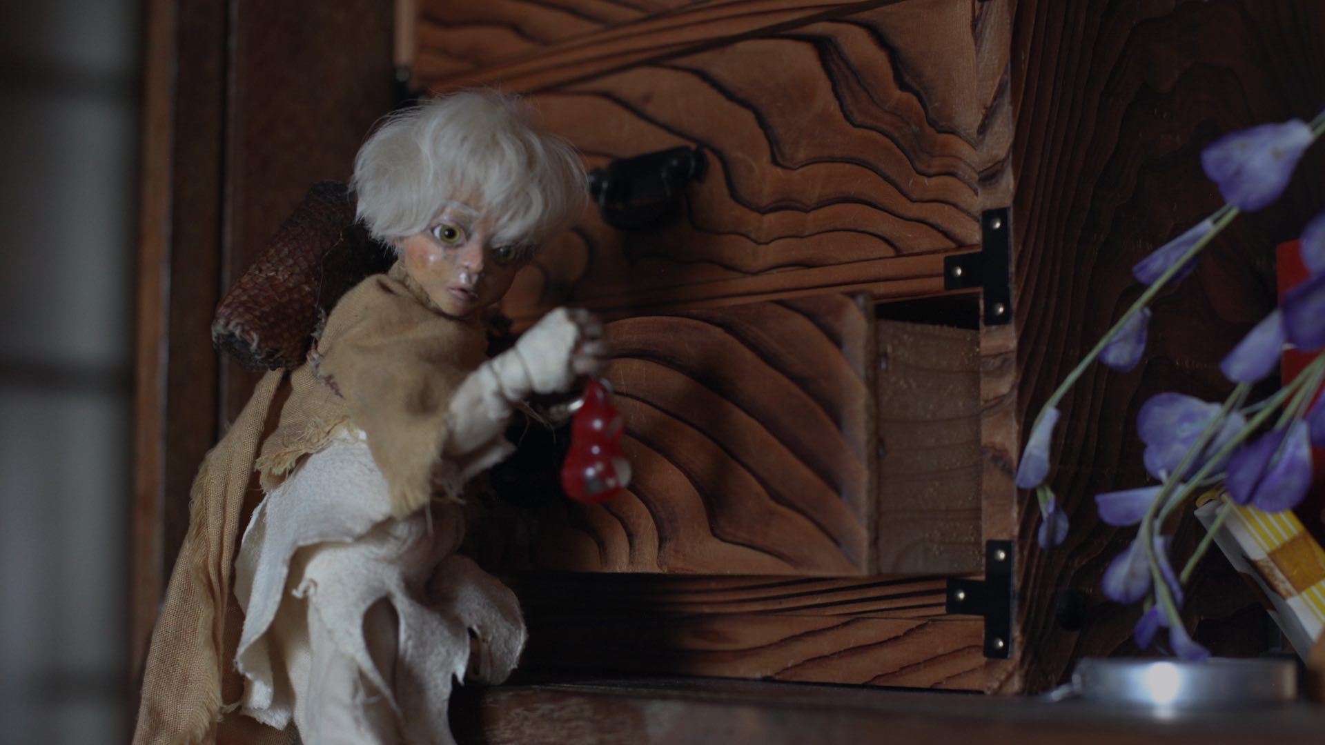 In an old house, a small figure darts through the shadows. A work of puppet animation that depicts“Yanari,”the uncan- ny phenomenon of unexplained noises in a house.